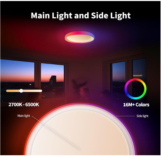 Dual Lighting Modes – Main LED light with adjustable white (2700K–6500K) and side ring light with full RGB color support (16 million+ colors).